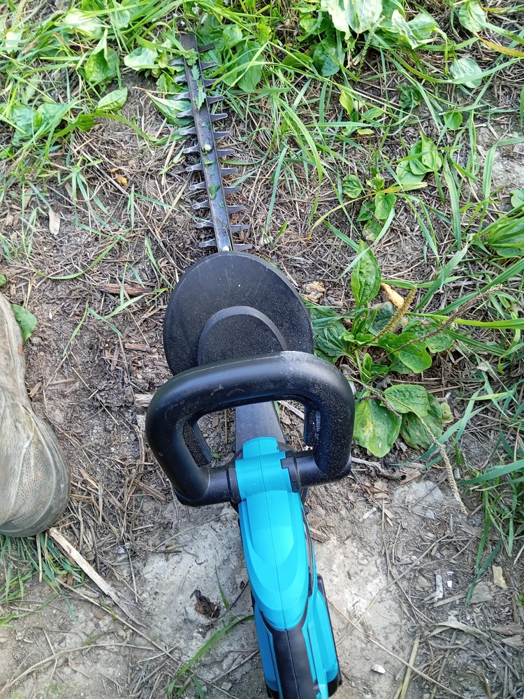 Очень удобный кусторез, легко справляется с любыми кустами.